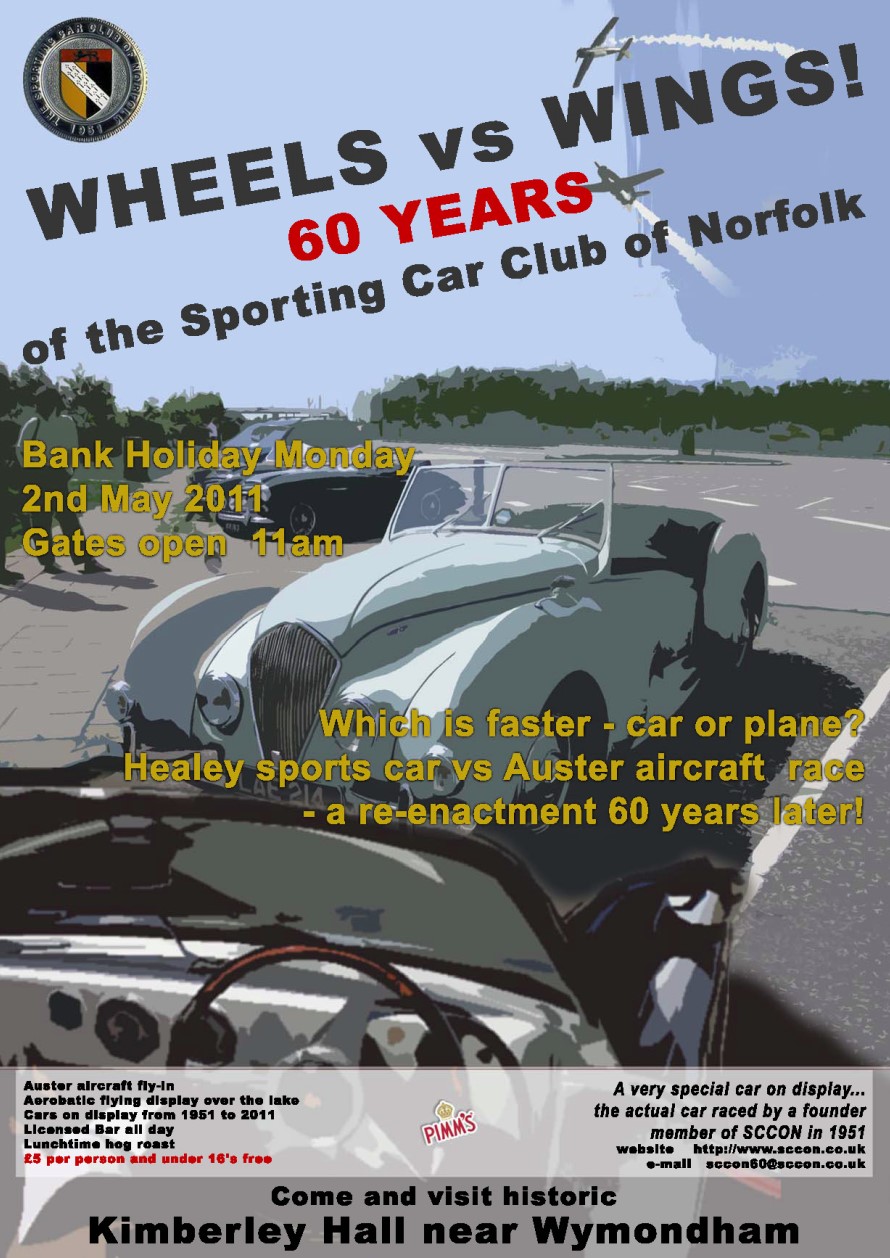 WHEELS vs. WINGSBank Holiday Monday 2nd May 2011At Kimberley Hall, WymondhamCelebrating 60 years of the Sporting Car Club of Norfolk
